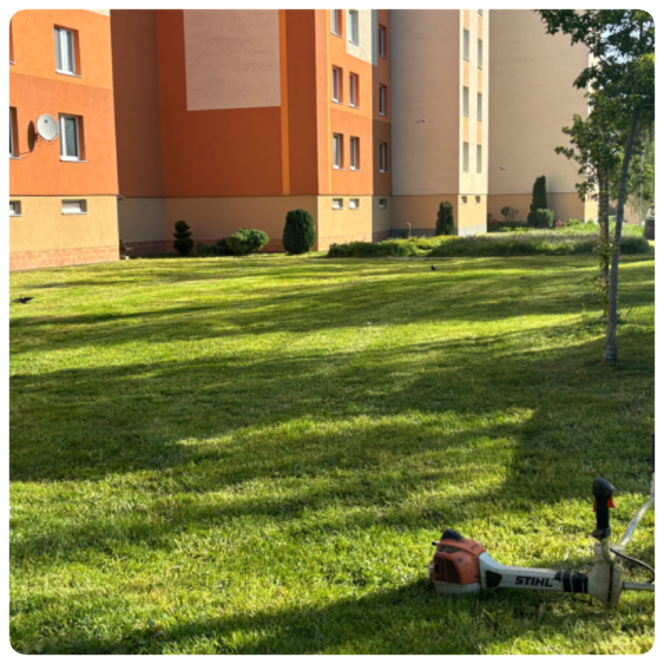Okrem kosby odburiňujeme a upravujeme záhony, polievame výsadby a dreviny, orezavame živé ploty, kry a stromy a aplikujeme postreky.
